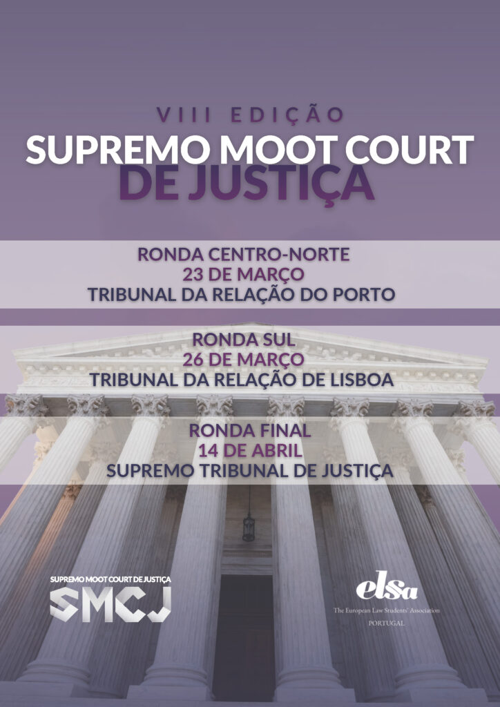 O Conselho Superior da Magistratura e o Supremo Tribunal de Justiça, em colaboração com a ELSA Portugal (The European Law Students’ Association), promovem a VIII edição do Supremo Moot Court de Justiça. A iniciativa pretende aproximar a formação académica da prática judiciária e incentivar o debate jurídico em torno da proteção dos direitos fundamentais. Terá como tema o Direito da Comunicação Social e da Internet.