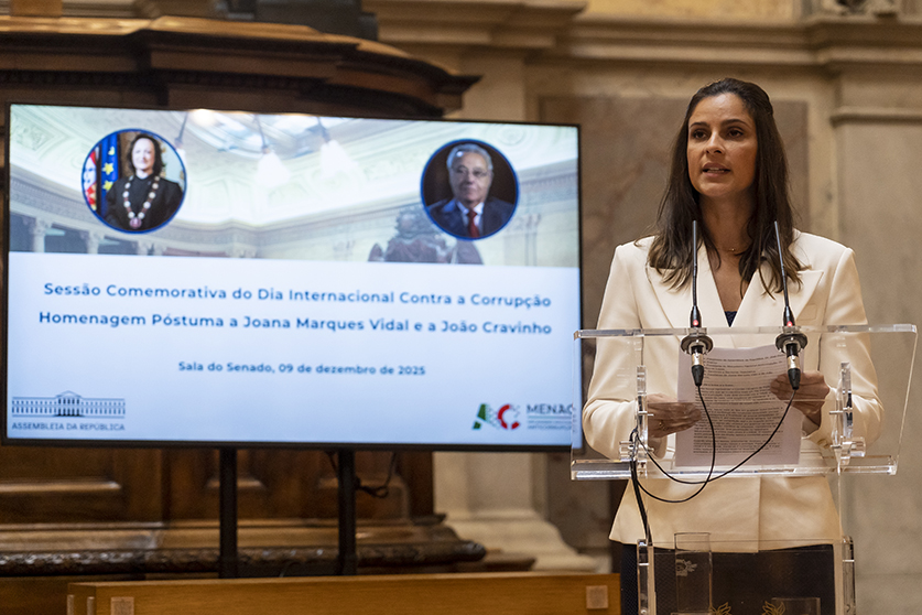 José Pedro Aguiar-Branco, presidente da Assembleia da República, saudou a iniciativa e a presença dos familiares dos homenageados. No seu discurso, defendeu que a corrupção não se combate com sensacionalismo nem com a ideia de que todos são culpados, alertando para os riscos do descrédito das instituições e do afastamento dos cidadãos da democracia. Sublinhou ainda que o combate à corrupção exige boas pessoas, boas práticas e bons exemplos, considerando que Joana Marques Vidal e João Cravinho deixaram, acima de tudo, um exemplo de verticalidade, de rigor e de serviço público.